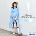 一枚でサラリと清潔感のあるスタイルが完成♪ゆったりとリラクシングなサイズ感。トップが前開きボタン仕様になっているので、マタニティ~授乳期まで活躍してくれるシャツワンピースです。お手入れのしやすいコットン&ポリエステル素材で、お洗濯後の乾きやすさも◎。ママのデイリーワードローブに是非♪