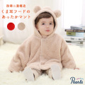くま耳フードがキュートなあったかボアアウター。 ふわふわのボアと裏地にフリースをドッキングさせて、とっても暖かい二重構造。 ポンチョのようなゆったりシルエットに袖がついて見た目の可愛さも防寒も◎