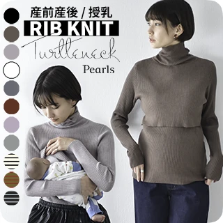肌当たりの良さと抜群の着心地でママ達の絶大な支持を得ている「授乳しやすい ヤミツキもっちりリブニットタートルネック」と同素材を採用した、Pearlsオリジナル授乳口付き袖スリット ボートネックリブニットのご紹介。