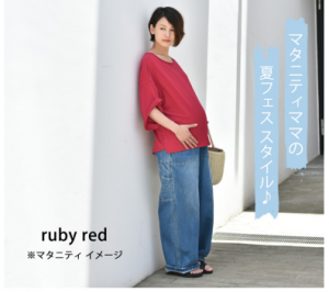 素材は国産コットン100%天竺で、ほどよい厚みとサラリとした肌触りが特徴です。型崩れしにくく、産前産後を通して手軽に利用することができます。
