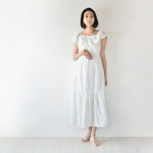 マタニティには珍しい真っ白のレースのワンピースは、他ではあまり見ないデザインかもしれません。